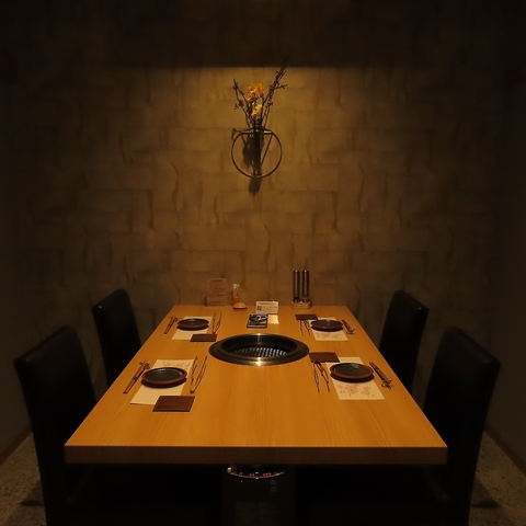 やわらかな灯りに包まれた完全個室で、大切な方との食事をゆっくりと。ご夫婦でのご利用や接待、記念日など落ち着いて過ごしたい夜に選ばれる一室です。上質な黒毛和牛を味わいながら会話も楽しめる人気のお席のため、週末や早い時間はお早めのご予約がおすすめです。