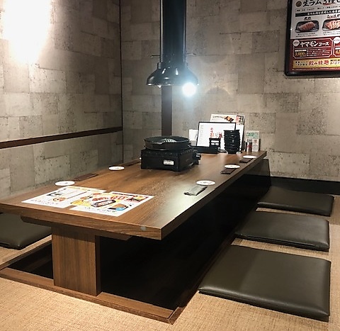 掘りごたつのお座敷で大人数も受付可!! 各テーブルにダクト設置しておりますので、匂いが気になる方への対策もバッチリ!