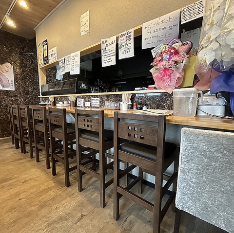 【おひとり様から】カウンターに7席をご用意しています。落ち着いた雰囲気の中でもアットホームさが漂います。おひとり様で楽しむも良し。人や知人と賑やかに過ごすもよし。様々なシーンに対応できるカウンター席で、特別なお食事をお過ごしください。