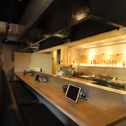 【1F カウンター席】カウンター席は6席ご用意しております。カウンターでは、目の前で調理するライブ感を味わいながら、お楽しみいただけるお席です♪