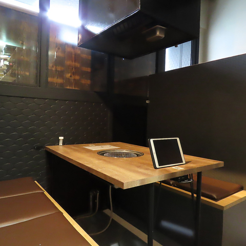 【1F テーブル席】2名様~4名様までのテーブル席をご用意しております。隣の席の方と目線が合わないように仕切りを高めにしておりますので、テーブル席でも周りの目を気にならないように、しております。