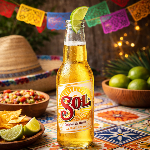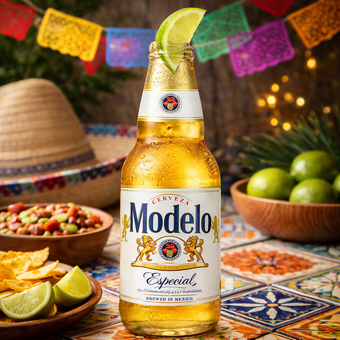 フレッシュライムを入れて、サルー!(乾杯)タコスにワカモレにピッタリ合うメキシコビールです