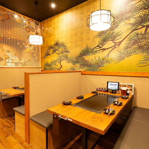 和の遊び心あふれる店内は、仕切り席も完備しており、気兼ねなくゆったり過ごせる空間です。