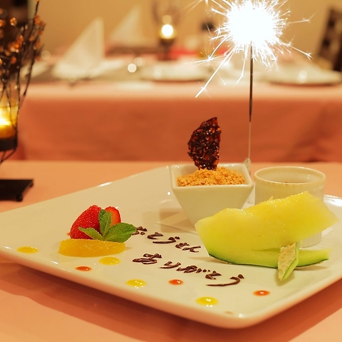 厳選食材のフレンチで大切な日を演出。メッセージ入りの記念日プレートで、記憶に残るサプライズを。