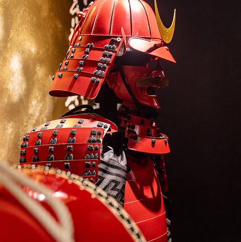 店内に一歩足を踏み入れると、甲冑や和の装飾が織りなす戦国の趣が広がり、まるで時を遡るような感覚に。落ち着いた照明と木の温もりが心をほどき、特別なひとときを演出します。