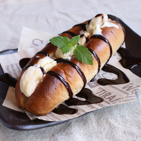 トースターでカリッと仕上げたパンに濃厚バニラアイスクリームとしゃりっとした冷凍バナナを入れた新感覚のデザート。