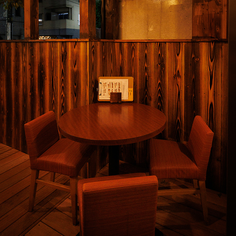 《少人数様向けテラス席》【2名様から3名様】開放的で心地よい雰囲気の中お食事を楽しめる人気のお席です。デートや少人数での飲み会におすすめです。
