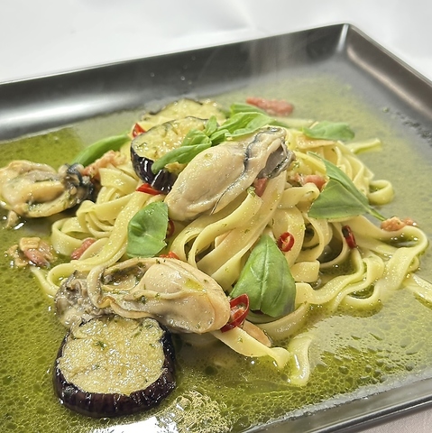 牡蠣となすのジェノベーゼは、新鮮な牡蠣のクリーミーな味わいと茄子のジューシーな食感が絶妙にマッチ。栄養バランスも良く、見た目も美しい一品です。簡単に作れるので、忙しい日にもぴったりです。