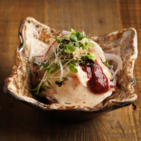 選び抜いた鮮魚を職人の目と手で一番美味しい瞬間に仕上げます。切り口の角度、温度の見極め、香りの立ち方、細部にまでこだわった刺身は、ただ新鮮なだけではありません。季節ごとの旬を活かし、素材の個性を引き立てる多彩な薬味や塩、オイルなどもご用意。醤油に頼らない、新しい“刺身の愉しみ方”を、ご体感ください。