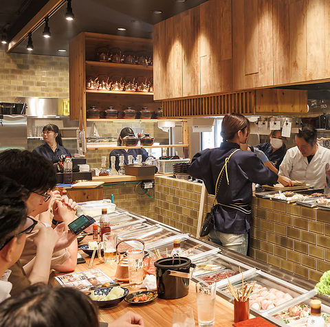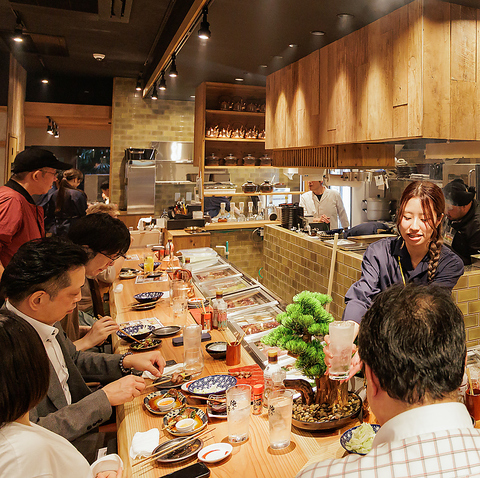 【ライブ感溢れるお店】会社帰りにお一人様でじっくりと楽しみたいお客様も、当店のカウンター席がおすすめです。季節の旬やその日のおすすめの情報がいち早く知れるのもカウンター席ならでは!伏見駅より徒歩6分の駅チカ、好立地なので終電ギリギリまでおくつろぎ頂けます。 【伏見/栄/飲み放題/居酒屋/魚/焼き鳥/焼鳥】