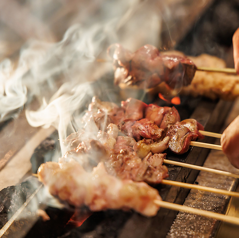 自慢の串焼きは備長炭焼き。炭火の遠赤外線効果でふっくらとした焼き上げと香り付けが実現。