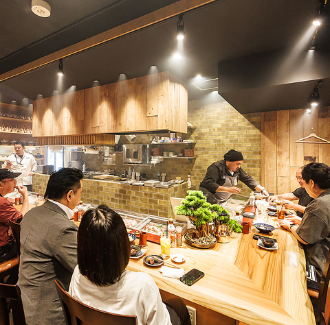 目の前はオープンキッチンとなっており、焼き場、板場のどちらも見ることが出来ます。臨場感を楽しみたい方にオススメです。