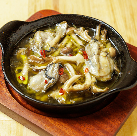 プリプリの牡蠣ときのこの定番アヒージョひとくち口に入れた時の幸福感をぜひ