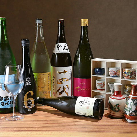 日本酒、ワイングラス、焼酎、果実を含むドリンクを豊富にご用意しております。全国の酒蔵から厳選したものを取り揃えております。また、お料理に合うお飲み物も、お好みのお飲物をご提供しております。お好きなお酒飲み放題プランをお選びいただいた方は、お気軽にご利用ください。お気軽にお声掛け下さい。