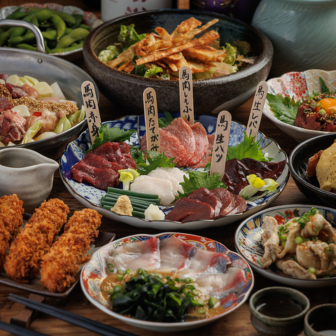 これからの時期にピッタリの旬で新鮮な食材が目白押し!当店自慢の創作料理をご堪能いただけます。お酒のアテにも最適な馬刺しは熊本県から直送される新鮮な馬肉を使用!お得な盛り合わせもございます。プライベート空間でゆったりとした時間をお過ごしください♪