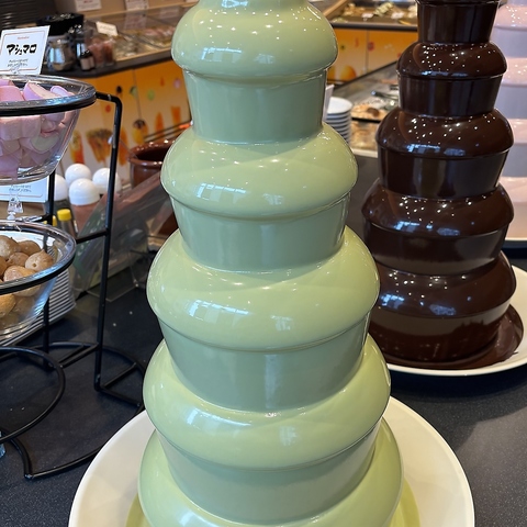 ミルクチョコ、ホワイトチョコ、季節のチョコの3種のチョコファウンテン