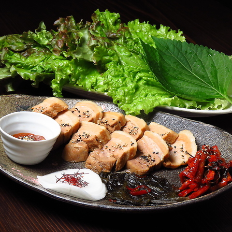 茹でた豚肉をたっぷりの野菜で包んで食べるポッサム。茹でるときに余分な脂が落ちるので、とてもヘルシーにお召し上がりいただけます。女性にもおすすめの一品です♪