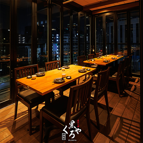 外の景色を一望できる、都会の喧騒を忘れさせる空間。少人数からご利用頂ける個室席もご用意しております。