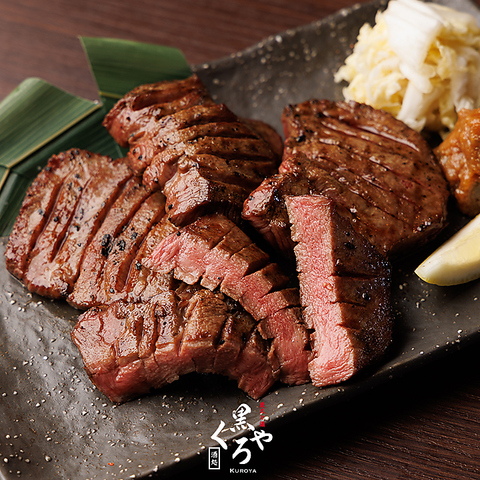 熟成牛タンを炭火でじっくり焼き上げ、外は香ばしく、中はしっとりと仕上げたくろや名物。熟成によって引き出された深い旨みと程よい弾力が、ひと口ごとに広がる極上の味わい。