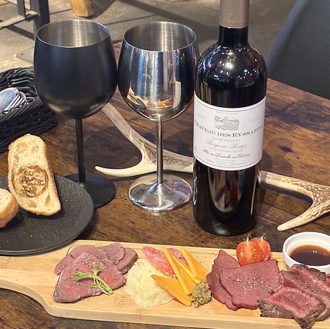 5,000円で時間無制限飲み放題!鹿肉5種食べ比べコースをご用意。ワイン1本無料サービス付きで、ジビエ好きにはたまらない大満足プランです(2名様~)。ゆったりと特別な夜をお過ごしください。