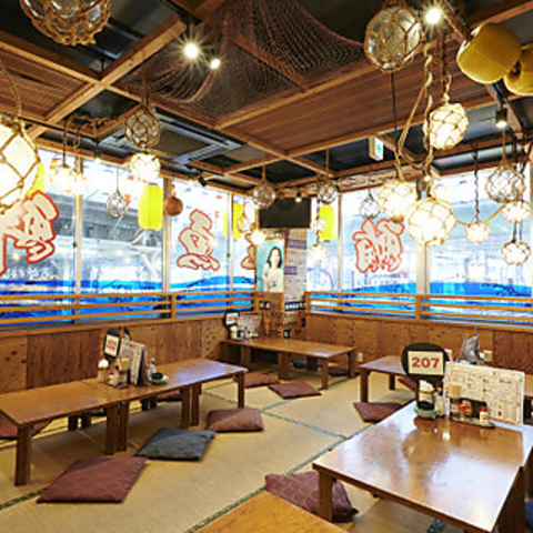 2階には23時までご利用いただけるお座敷席を完備。足を伸ばしてゆったりリフレッシュしながらお食事をお楽しみいただけます。グループでの宴会に最適な広々空間◎フロア貸切を承っておりますので、会社宴会やイベントの打ち上げ、同窓会など団体様のご利用大歓迎です!ご予算・人数などお気軽にご相談ください。