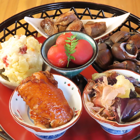 毎日日替わりでつくるおばんざいともう一つの名物は炭火焼き!海鮮や名古屋コーチンの炭火焼が自慢!ふらっと立ち寄るのにぴったりのおばんざいや炭火焼をどうぞ。【伏見/海鮮/飲み放題/炭火焼き/おばんざい/居酒屋/栄/錦/栄駅】