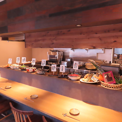 日替わりのおばんざいが並ぶカウンターは特等席。少人数のご宴会におすすめの席となっております!