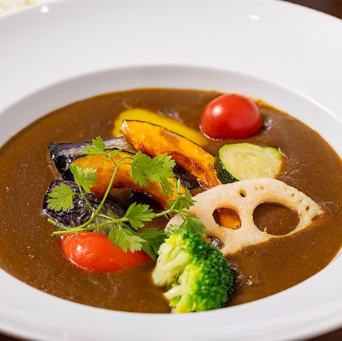 2種類のカレーをお楽しみいただけます。A:野菜と国産ビーフB:野菜と国産ポークC:本日の日替わり その他オプションも豊富にご案内しております。