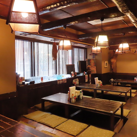 | 座敷 | 4名様×9 | 木の温もりが感じられる掘りごたつ席で、ゆったりとした時間をお過ごし頂けます。畳敷きの床と自然光が差し込む大きな窓が、心地よい空間を演出します。調味料やメニューも充実しており、温かみのある照明が雰囲気をさらに引き立てます。 |