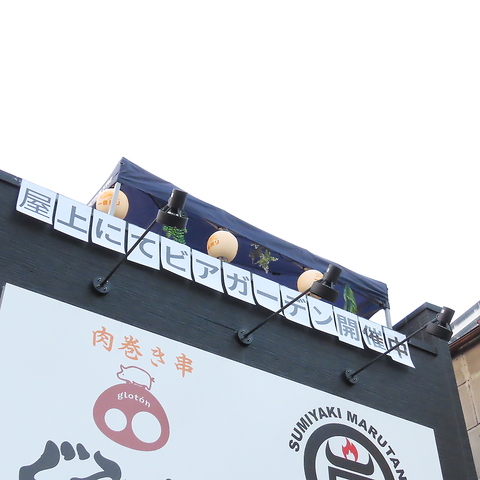ビアガーデンののぼりが目印!炭焼きまるたん様の横道を入っていただき、階段を登った先がビアガーデンとなります♪