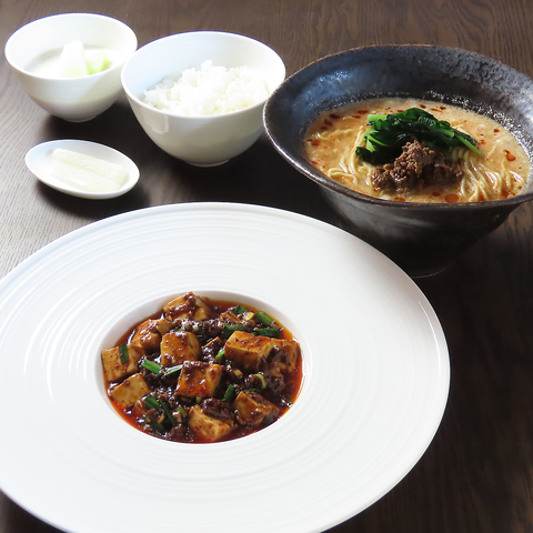 Dining37の和牛入り麻婆豆腐と担々麺のお得なセットを3種類からお選びいただけます!A: ハーフ麻婆豆腐+レギュラー担々麺B: レギュラー麻婆豆腐+ハーフ担々麺C: レギュラー麻婆豆腐+レギュラー担々麺(+300円)・香物・ごだわり和三盆の杏仁豆腐・ライス無料