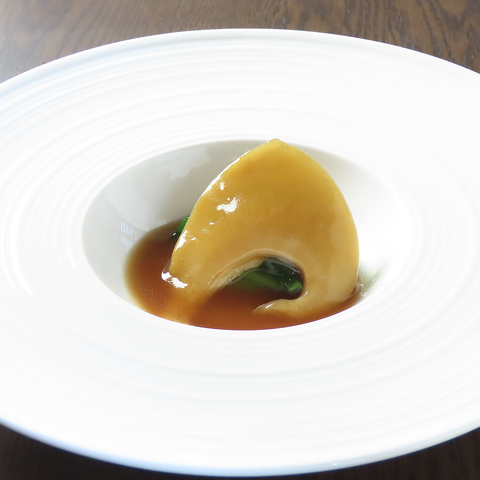コースは1名様からご注文可能です。お料理は、前菜からメイン、デザートまで旬の食材を活かした全8品。お一人様でもご家族、ご友人でもご利用いただけるよう、ボリューム満点の内容となっております。牡蠣、常陸牛、ふかひれなどをメインに新鮮な食材を使用しています。あっさりとしたお味の中にもコク深い一品の数々。