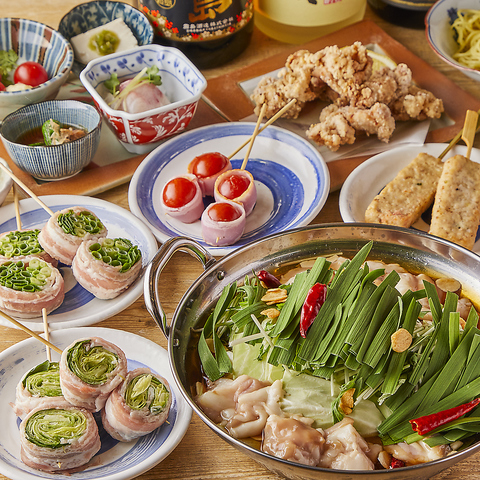 博多名物の炙り料理や串焼きメニューを始め、うずまきの魅力がたっぷり詰まったコースをご用意♪九州の恵みをふんだんに使用した食材をお楽しみください!気軽な宴会から接待まで幅広い価格帯でご用意しており、コスパ抜群♪博多牛もつ鍋コースも大人気♪