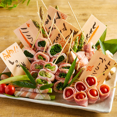 女性人気の火付け役《野菜巻き串》福岡博多の新名物としてメディアで話題沸騰!定番野菜の巻き串から変わり種の季節食材の巻き串と、うずまきでしか味わえない本格的な野菜巻き串をご賞味あれ♪定番のレタス巻きやトマト巻きに加え、季節限定の食材を使用した創作串もご用意しております。ヘルシー志向の方や女性のお客様にも大好評♪