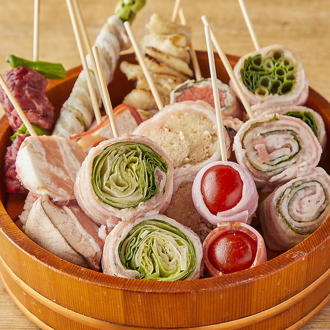 うずまきでしか食べられない!?食材達の一期一会を料理で表現♪料理長の遊び心が詰まった名物料理をご堪能してください!季節限定串・プチトマト巻・レタス巻・しそ巻・万ネギ巻・豚バラ串・鶏皮串etc...コスパ良し!ビールにもハイボールにも焼酎にも合う逸品です♪