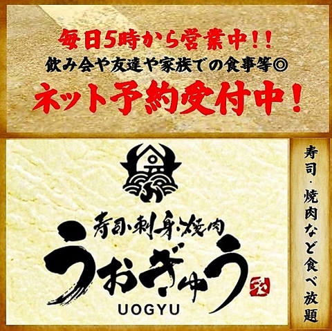 無煙ロースターで焼く食べ飲み放題は4000円からご用意。アルコールなしの飲み放題は500円引きになります!最初にお薦めお肉の盛り合わせをお出しし、それを食べ終わらなくても何品でも追加でご注文いただけます。寿司と焼肉の食べ放題なら、うおぎゅうへ!!