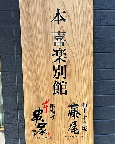 1つのお店の中に、2業態が入ったスタイル。入口で、串揚げかすき焼どちらをご利用かお伺いします。