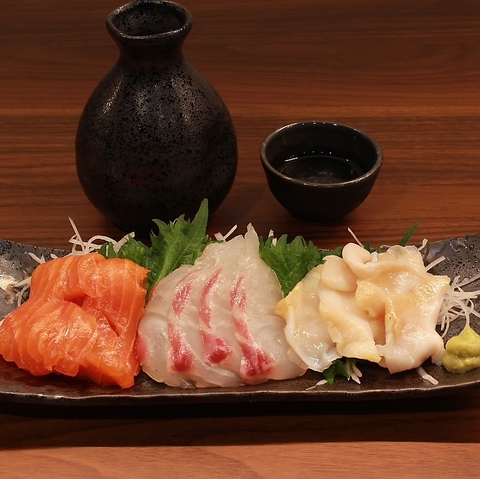 当店自慢の鮮魚メニューはボリューム抜群♪。マグロの赤身や鯛、カツオやサーモンなど季節新鮮鮮魚を各種ご用意しております!