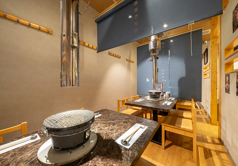 カウンターは6席ご準備しております。お1人様でもお気軽にお立ち寄りください。1席ずつダクト付きなので煙たくありません。