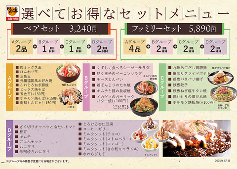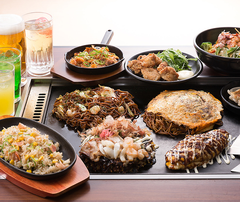 あれもこれも!たくさんあるメニューでお困りなら食べ放題コースがオススメです★もんじゃ焼きに特化したコース、おつまみに特化したコース、鉄板焼に特化したコースをご用意!もちろんすべてのコースにお好み焼きが含まれます。さらに、+990円(税込)~飲み放題付に。各種宴会にも最適なコースでお楽しみ下さい♪