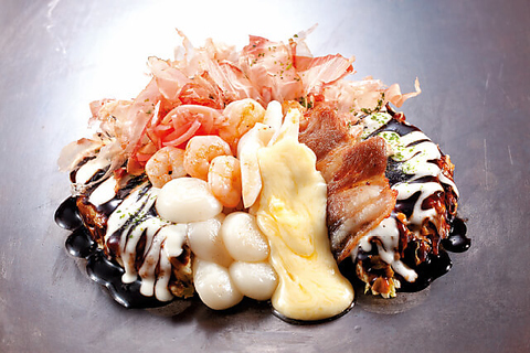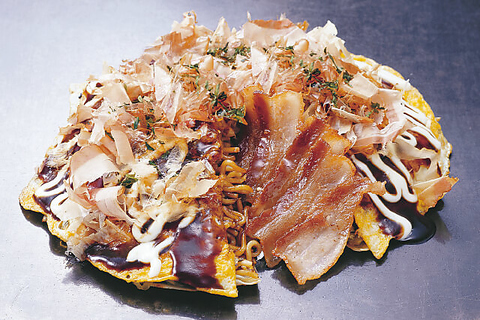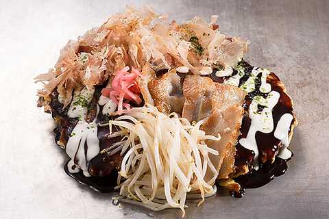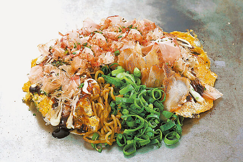 当店自慢のお好み焼きは、関西風・広島風・福岡風・山芋焼の4種類を取り揃えています!是非、食べ比べて自分のお好みを探してみてください!【※お好み焼き・焼そば・もんじゃ焼き・そばめしは+150円(税別)で大盛り・トッピングできます】※290円(税別)でスープ・ドリンクバーつけれます(3歳以下のお子様は無料です)