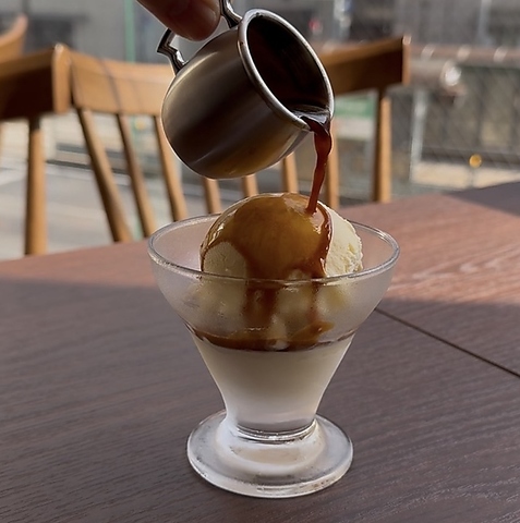 日本では稀少なレバー式のエスプレッソマシンで抽出した最高のエスプレッソを、濃厚なバニラアイスにかけてお楽しみください。コーヒー豆はコピバリアラビカ神山を100%使用しており、日本ではここでしか味わえないエスプレッソとなっています。