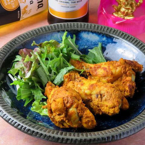 お昼にはカレーですが、夜には各種おつまみメニューをご用意しております。ブランド鶏の豊のしゃもを始めとした、タンドリーチキンやポークスパイスなど、スパイス料理店ならではのラインナップが特徴です。お酒との相性も抜群◎ぜひ合わせてお楽しみください!※唐揚げとタンドリーチキン以外はニンニク不使用です。