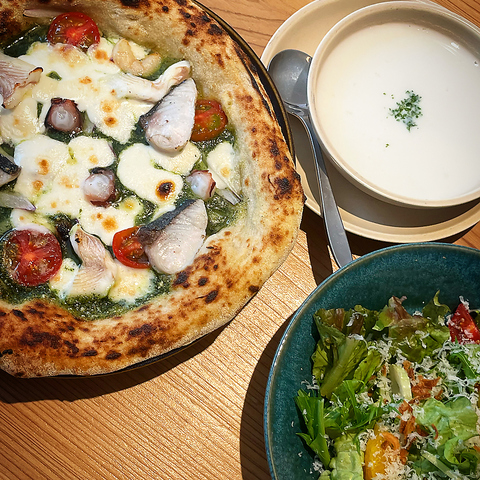 ランチタイムはスープ、サラダがセットになります。ディナータイムは価格が異なります。