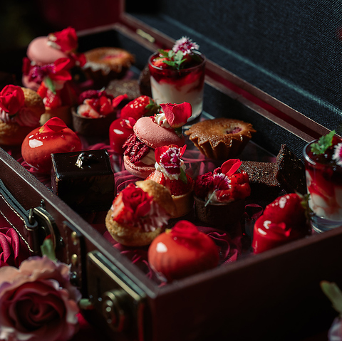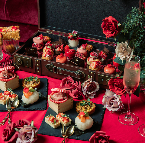 開催期間4/20-5/31京町家で楽しむ、薔薇に包まれた特別なアフタヌーンティー。トランクボックスを開けると広がる、苺とショコラを中心とした華やかなスイーツの数々。記念日やご褒美時間、大切な方との特別な時間におすすめのプランです。