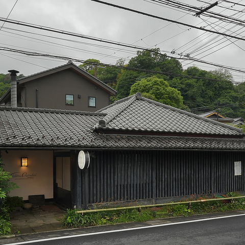 店内は古民家の趣を活かした和モダンな設えで、黒基調の内装と木の温もりが心地よく調和しています。ふすまや梁がそのまま残された空間に、落ち着いた照明が優しく灯り、時間がゆっくりと流れるような静けさを演出。テーブル席とカウンター席が程よく配置されており、どの席も居心地よく、シーンを問わずリラックスして過ごせます。