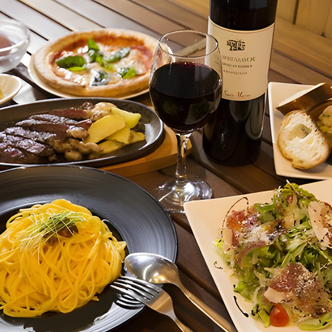 ご宴会には、ピザや牛赤身ステーキなど定番料理が揃う4,000円のコースが人気です!さらに大人気のかに味噌クリームパスタや黒毛和牛ステーキが楽しめるプランまで幅広くご用意。隠れ家ロフト席を貸し切っての楽しい宴会にぜひご利用ください♪
