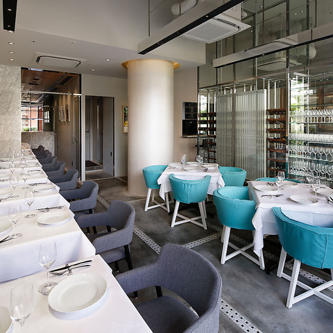 ティファニーブルーを基調とした洗練された空間。心地よいひとときをお過ごし下さい。