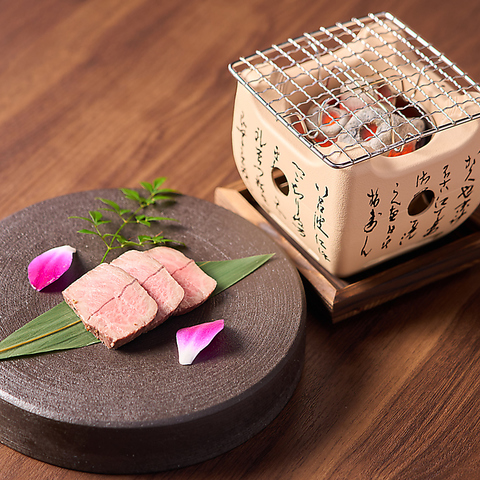 きめ細かな霜降りと甘みのある脂が特徴的な日本一に輝いた実績もある鹿児島黒牛を使用しております。表面を炙ったことにより、香ばしさと肉の旨味を引き立て、中はレアでとろける食感で絶賛です。