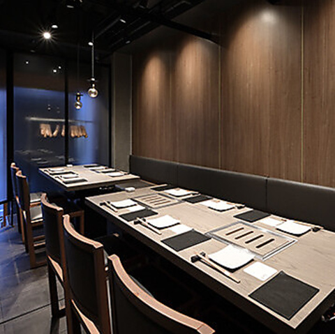 おしゃれなテーブルが配置されており、プライベートな空間でゆったりと食事を楽しめます。周りを気にせず会話を楽しめ、落ち着いて上質なお肉を味わえます。